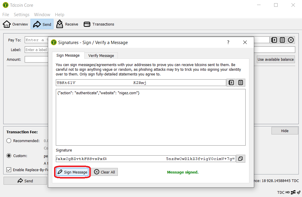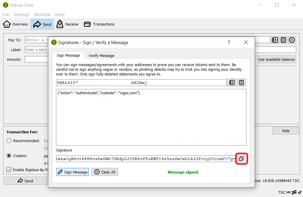 Lastly please use newly created TDCoin address and signature on Nigez.com registration form.